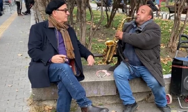 Докато се разхожда из града, Гарсия чува познатата мелодия от „Кръстникът“. Актьорът се приближава към източника на мелодията, който се оказва уличен музикант със саксофон, седнал в градинката пред Народния театър. Впечатлен от таланта му, Гарсия сяда до него, слушайки внимателно изпълнението му, а след това му оставя пари.