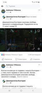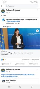В работно време дамата публикува и агитира по Фейсбук за коалицията, агитира и служители от централното управление и горските стопанства. Трифонова се представя за еколог.
