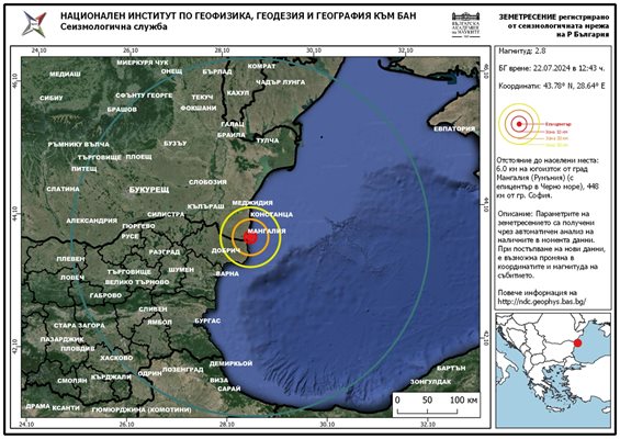 Земетресението е с епицентър на шест километра югозападно от румънския град Мангалия и на 50 километра от Добрич.
