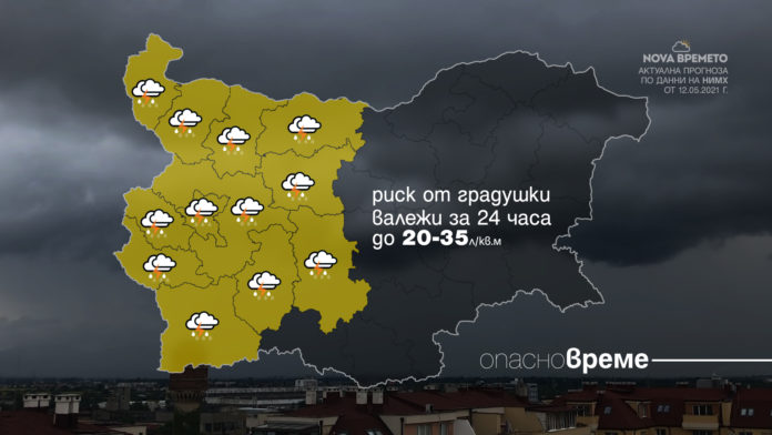 Жълт код е обявен за 12 области в Западна България за валежи и гръмотевици. Явленията започват следобед, ще има условия и за градушки. Очакваните сумарни количества дъжд са между 20 и 35 мм.