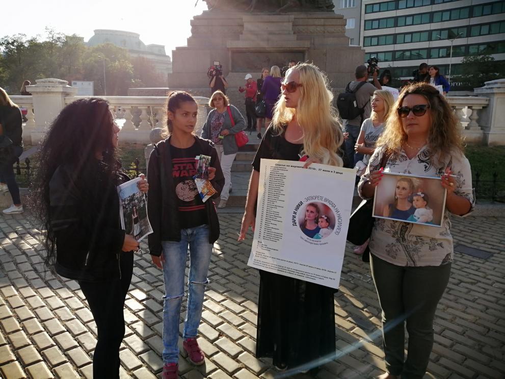 На протеста присъстваше и Ваня Министерска – майката на Дарина, която беше убита заедно с нейното дете. Тя беше категорична, че убиецът на дъщеря й и внучка й – Викторио Александров, трябва да получи „доживотен затвор без право на замяна“. „Делото в момента е доникъде. все още няма обвинителен акт. Оказа се, че никой няма право да ни информира какво се случва“, каза Министерска.