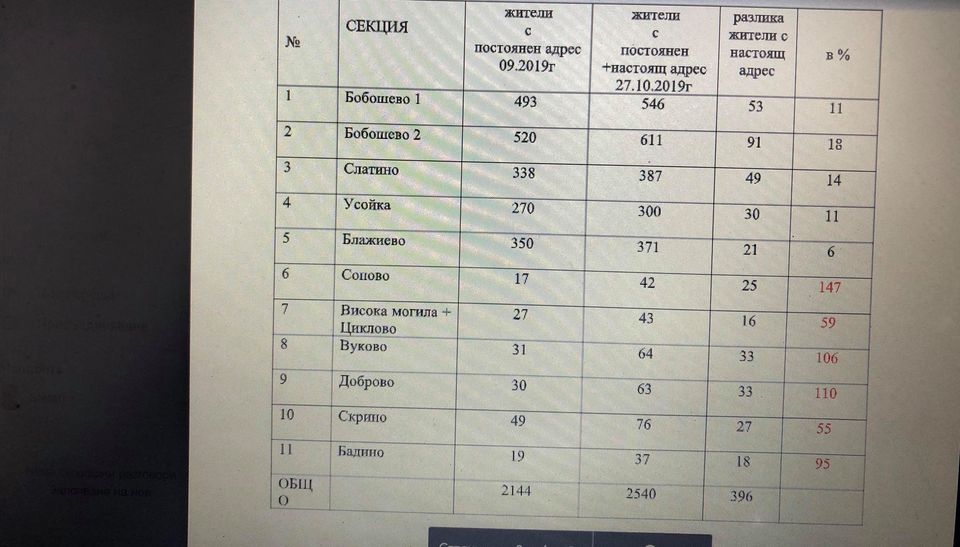 В населените места, в които се избира кмет процента на дописване на хора е между 6% и 18%. Там където се назначава кметски наместник на пряко подчинение на кмета Крум Маринов процента рязко скача: от 55% до 147%.