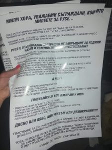 Градът бе залят от листовки с фалшиви призиви, пуснати уж от ГЕРБ, в които се призовава да не се гласува за БСП. Според запознати автори на листовките са именно от червената партийна централа, която се изкарва жертва на тях.