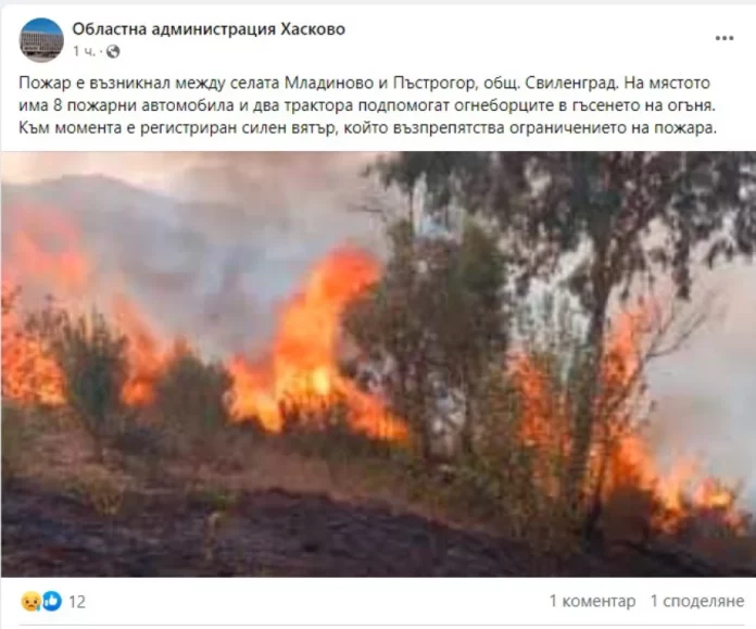 Пламъците се развиват в труднодостъпна местност. Високите температури и силните пориви на вятъра пречат за потушаването. Вчера община Свиленград обяви бедствено положение, а областният управител Гинка Райчева издаде заповед за забрана за почистване на пасища и горски площи.