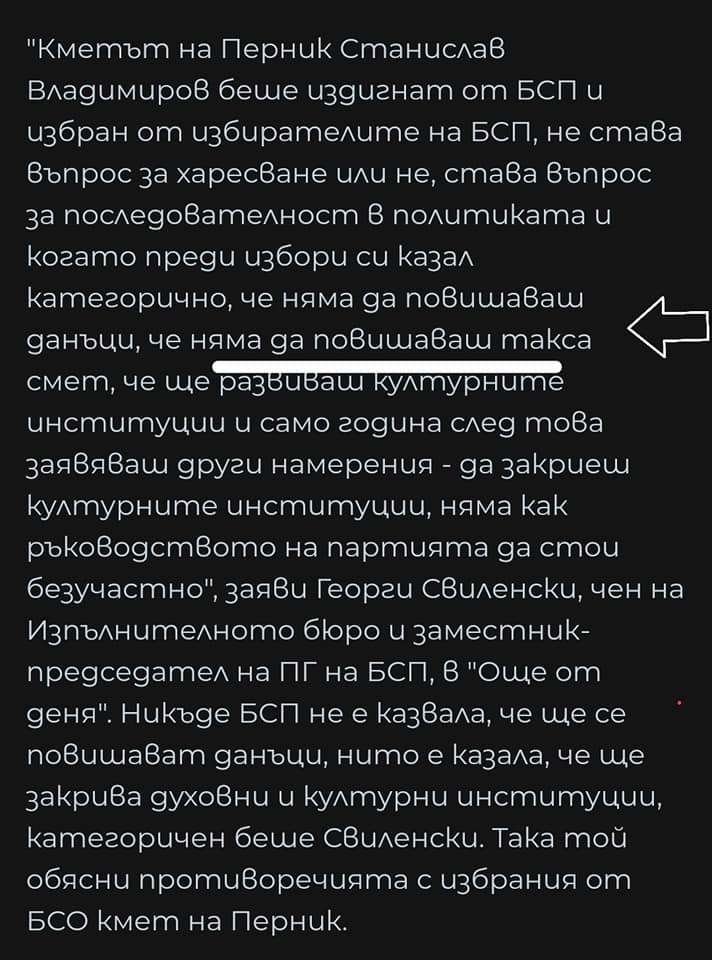 / в контекста на предложението на С.Владимиров – кмет на Перник, на което Нинова и БСП остро се противопоставиха/.