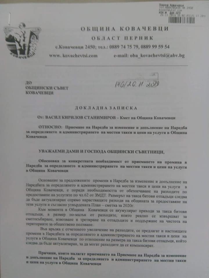 На една от първите сесии, удобно насрочена на 30.12.2019г, този, за когото най-важни са хората, ги суровака новогодишно, като им покачва данък недвижими имоти от 2,2 на 3,5 на хиляда. Такса смет за физически лица става от 8 промила на 12 промила, а за юридически става 14 промила. Никъде не открих община с толкова висок промил, но в община Ковачевци е така, социалистически феодализъм. Тодоров публикува и преокторешението на кмета за вдигане на данъците на местните хора.