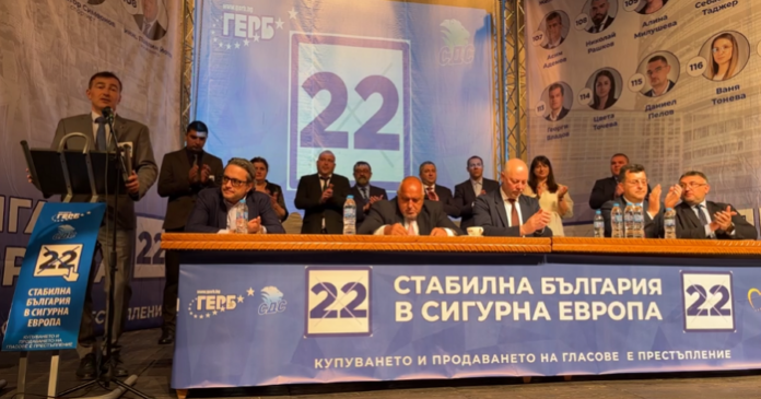 С викове „Победа“ и бурни аплодисменти, да трибуната излезе Бойко Борисов.