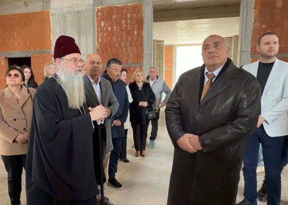 Точно в 12, 20 часа лично владиката Николай посрещна Борисов в строящия се храм „Св. Апостол Ерм“.