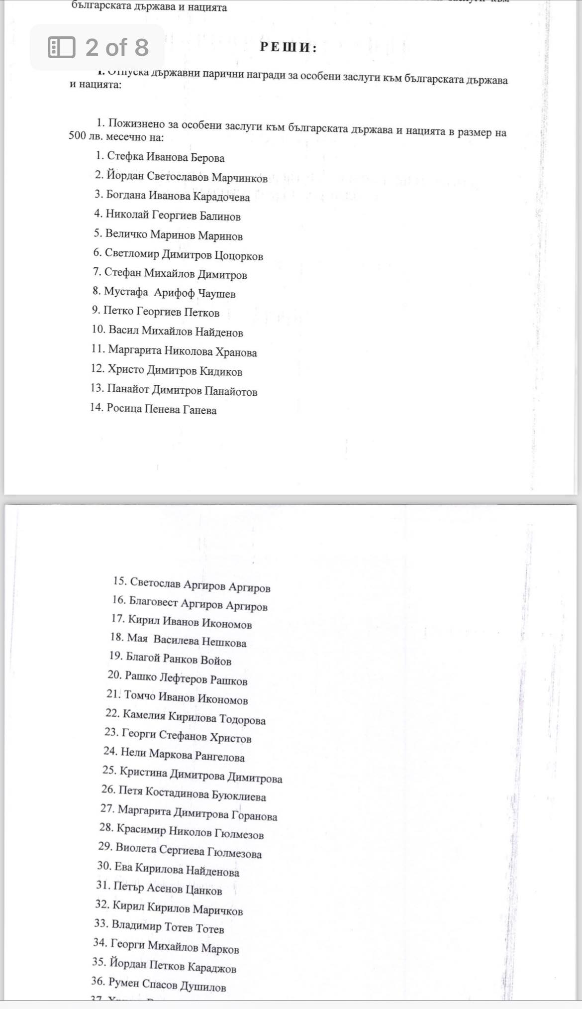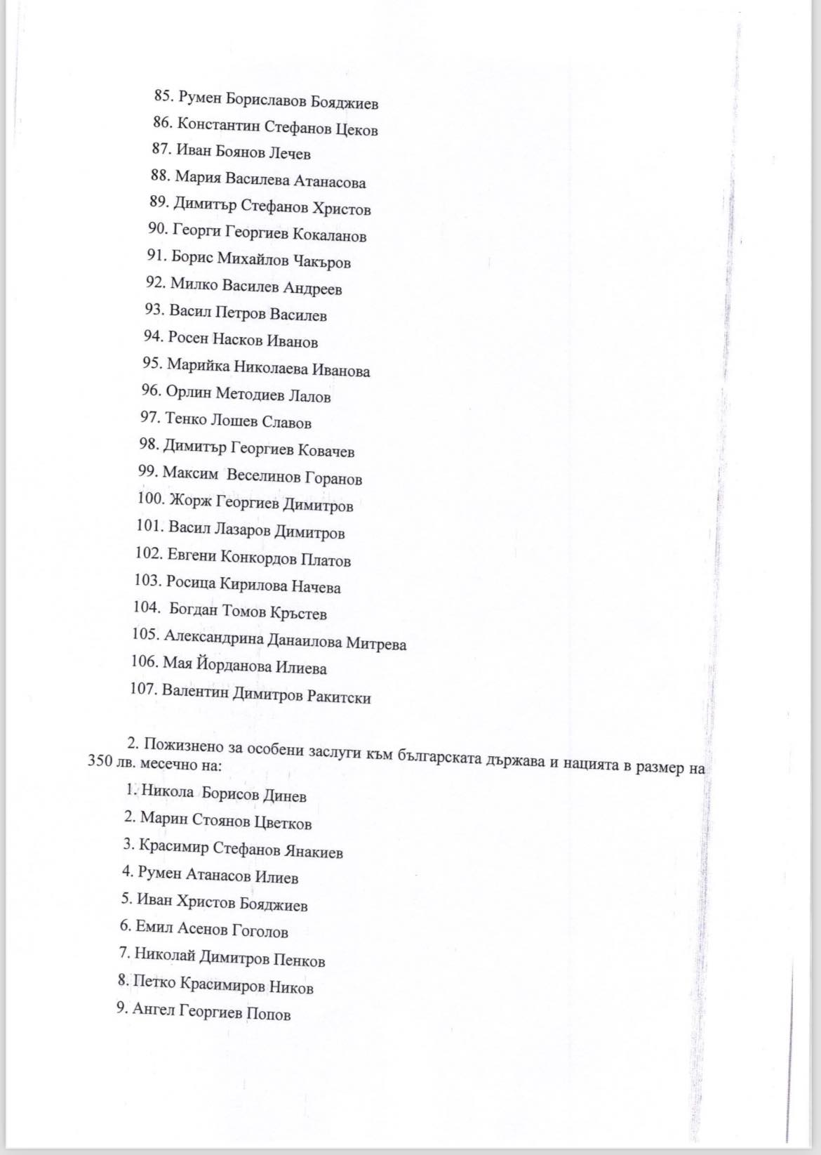 Вносители са Бойко Борисов, Тома Биков и Деница Сачева. Сред посочените за пожизнени пенсии са братя Аргирови, Росица Кирилова, Стефка Берова, Богдана Карадочева и Васил Найденов