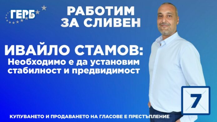 Ивайло Стамов има висше юридическо образование и работи като митнически агент. Кандидат е за общински съветник от листата на ГЕРБ в Сливен. На 29 октомври можете да гласувате за него с номер 7 в бюлетината и преференция 118.