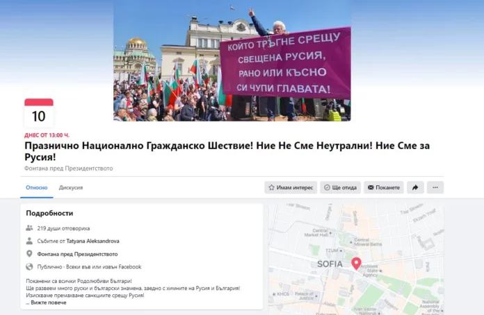 В последните дни информацията за събитието, разпространявана в социалните мрежи, беше под надслов „Ние не сме неутрални. Ние сме за Русия! Победата е наша“, което не съответстваше на официално заявеното от организатора гражданско обединение „Национална гражданска инициатива за суверенитет на България и другите държави по света“ мероприятие, посочват от Столичната община.