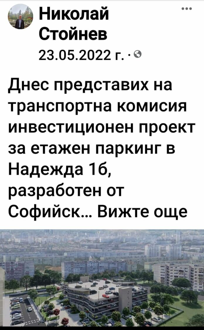 Г- н Депутатът се ядосал, че няма паркинги, отишъл в парламента и казал на сътрудничката си: сядай и пиши писмо на Фандъкова и в резултат сега се строи паркинг в Надежда.