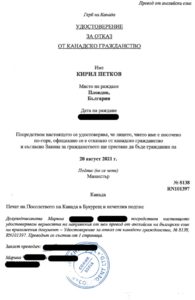 Административният акт, получен по пощата, носи дата 20 август 2021 г. и удостоверява, че към тази дата Кирил Петков не е гражданин на Канада, добавят от партията.