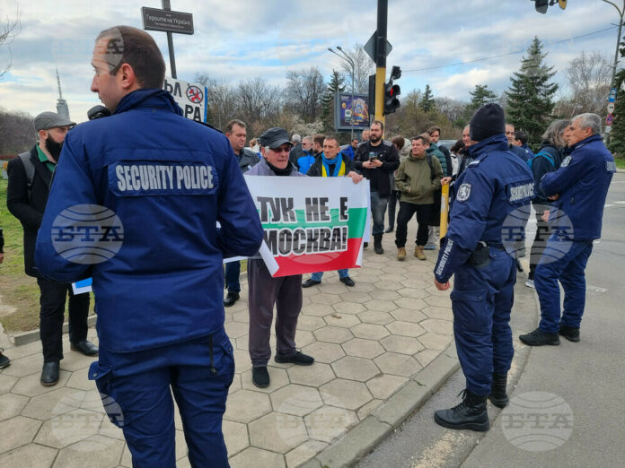 В района има засилено полицейско присъствие. Събралите се граждани разпънаха знамена на България и Украйна. Кметът на София Васил Терзиев дойде на протеста с намерение да говори пред събралите се, но, след кратка размяна на реплики с организаторите, си тръгна, съобщава БТА.
