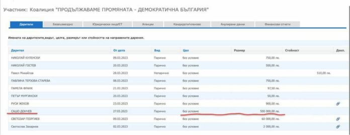 Бърза справка показва, че само бизнесменът и собственик на „Оверагаз Инк“ Сашо Дончев налял половин милион лева за кампанията на коалицията, съобщава Агенция ПИК.