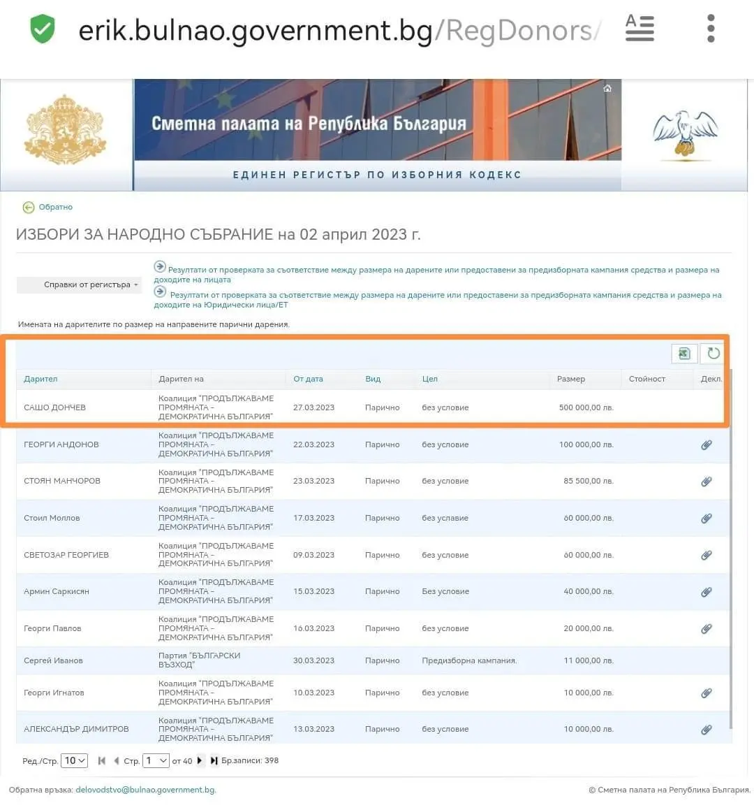 “Както беше в случая с даренията на ДБ от страна на служители на криптобанката „Нексо“, така и при Сашо Дончев очевидно не става въпрос за спонсориране на идеи и политики. Дарението от Дончев е осчетоводено купуване на послушни депутати и/или министри в следващо управление. Срещу стотици хиляди лева”, се казва в писмо до медията ни, съдържаща множество снимки и документи.