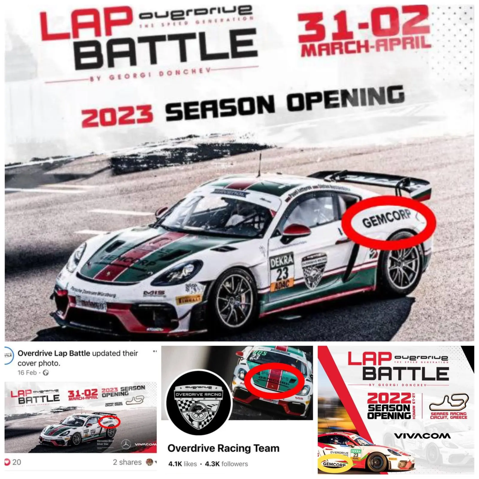 Наша проверка показа, че през 2022 и 2023 година автомобилните състезания на Георги Дончев са широко рекламирани в медиите и в социалните мрежи. Като върху всички автомобили, рекламиращи събитията, са ясно отбелязани основните спонсори на събитията – Овергаз и … Gemcorp. Състезателна кола, брандирана с огромен надпис Gemcorp е рекламирана включително и през месец април 2022 година. Когато скандалът с меморандума, подписан в присъствието на Кирил Петков, вече беше тема в медиите и в парламента.