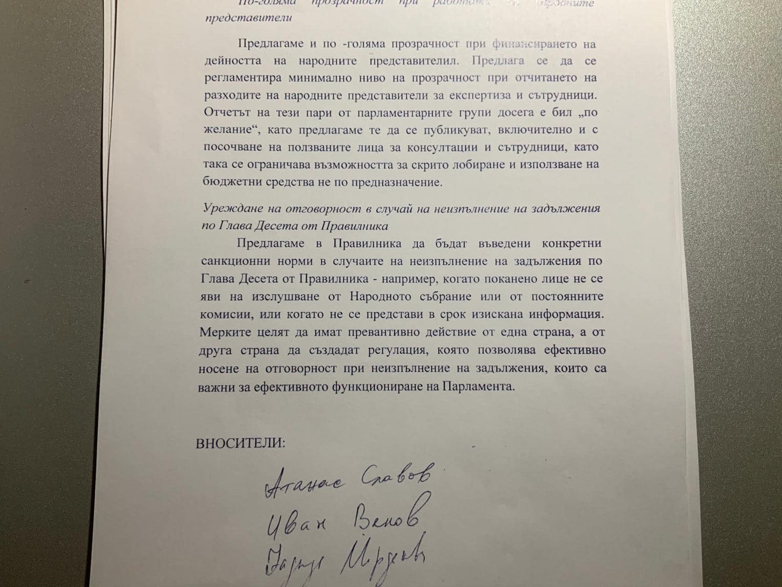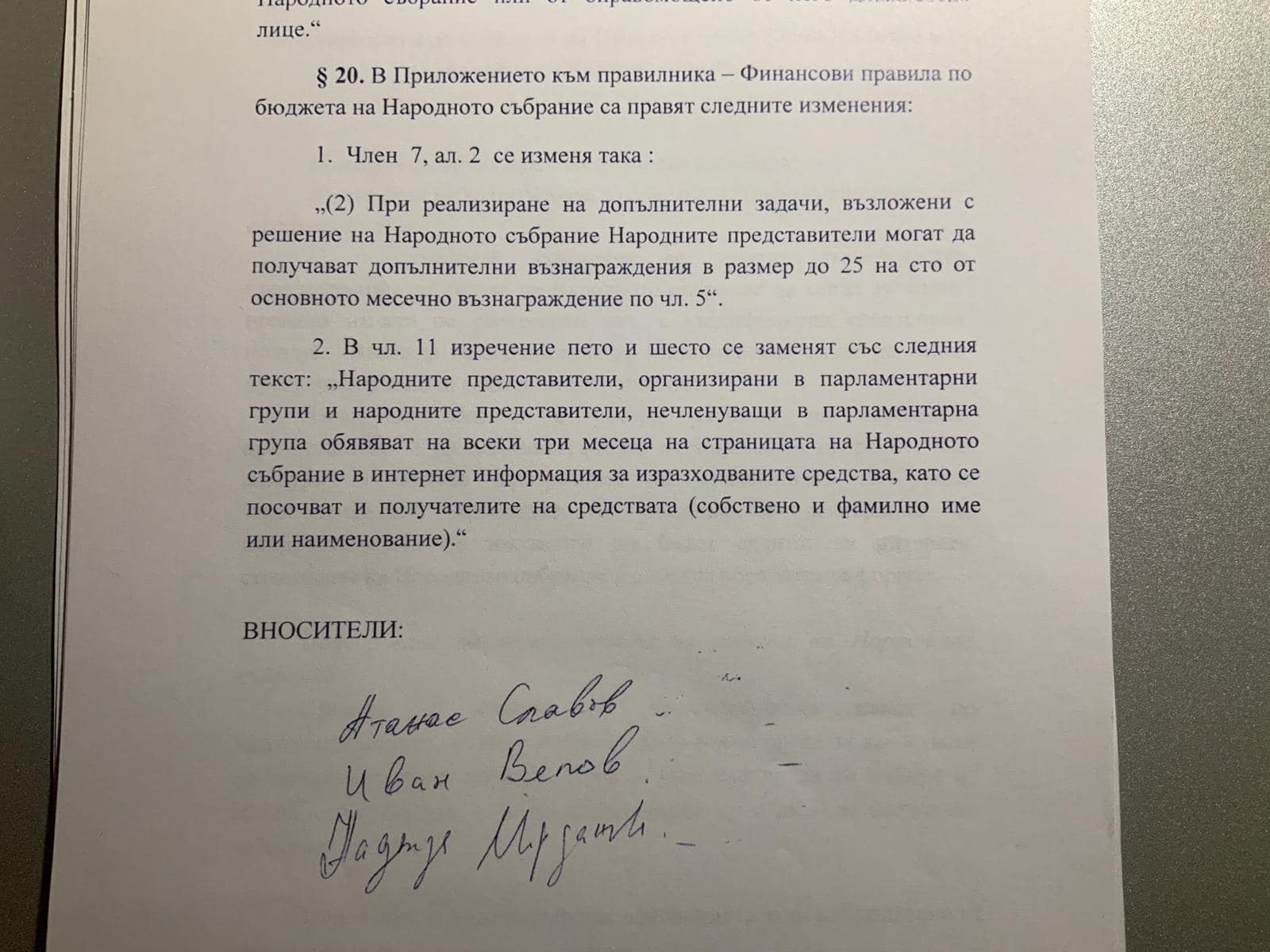 Депутатът от ГЕРБ Димитър Главчев публикува във Фейсбук скандалните предложения, внесени от хората на Христо Иванов-Атанас Славов, Иван Вельов и Надежда Йорданова.