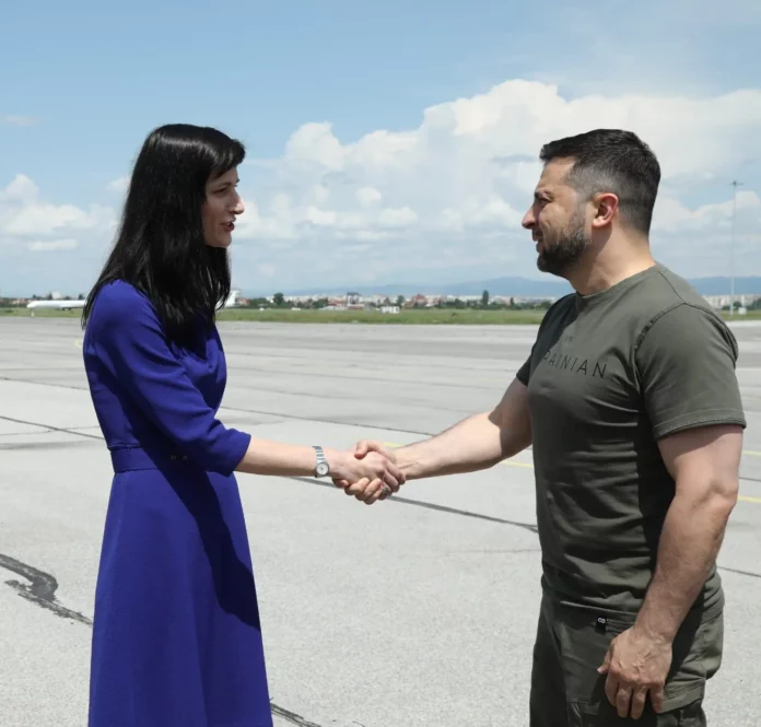 Украинският президент Володимир Зеленски кацна в София с правителствения самолет в 12:04 часа. Той е излетял от молдовската столица Кишинев в 11:06 часа. На летището в София беше посрещнат от вицепремиера и министър на външните работи Мария Габриел.