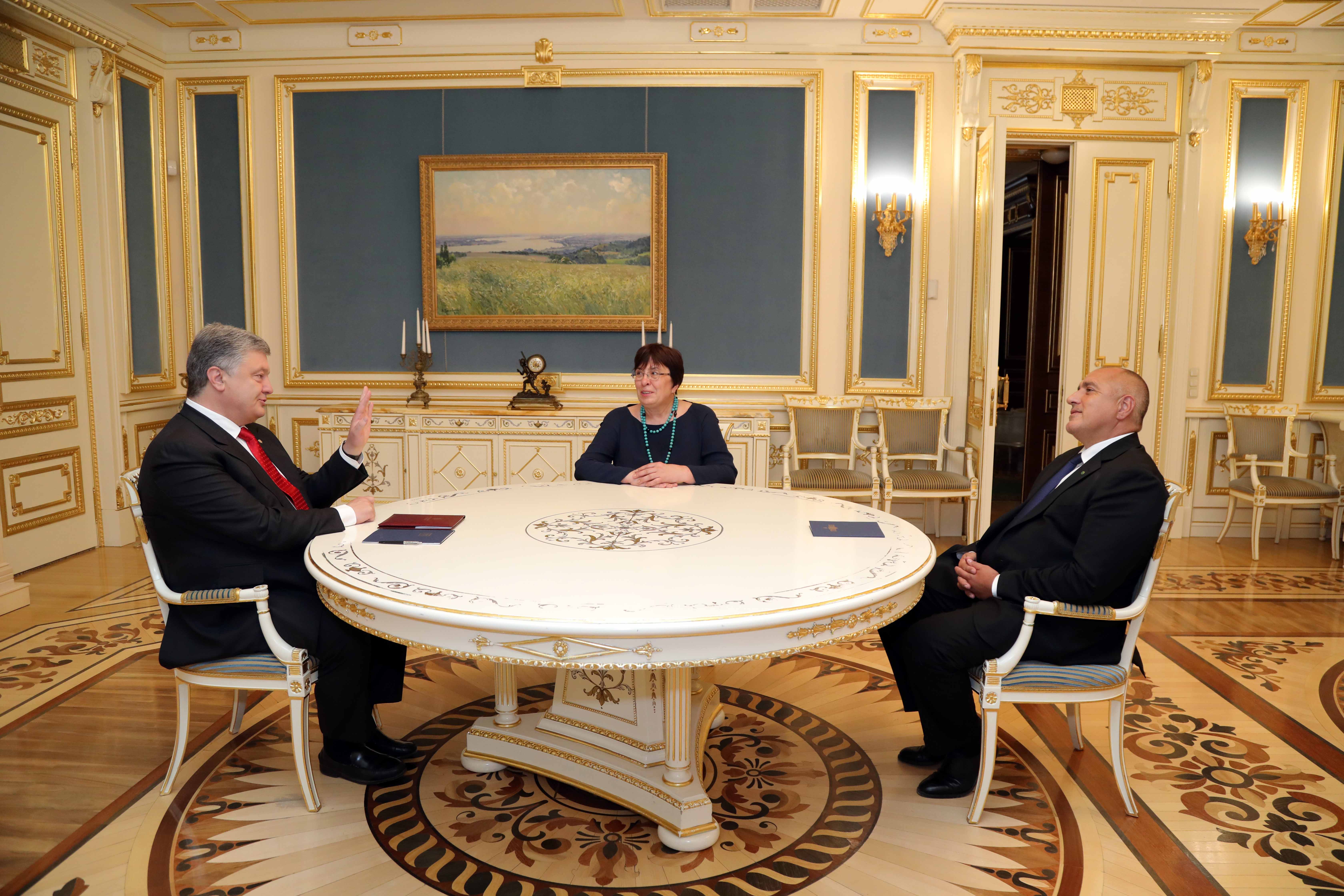 Президентът Петро Порошенко благодари за позицията на България в подкрепа на териториалната цялост на страната, както и за отношението на правителството ни по теми като визовите облекчения и икономическите връзки със страните от ЕС. Той посочи, че разчита на България и на Българското председателство така, както е поставило въпроса за Западните Балкани, да разглежда и инициативата на ЕС за Източното партньорство. За нас свързаността и особено изграждането на коридор №4 е от изключително значение, посочи Порошенко по време на разговорите.
