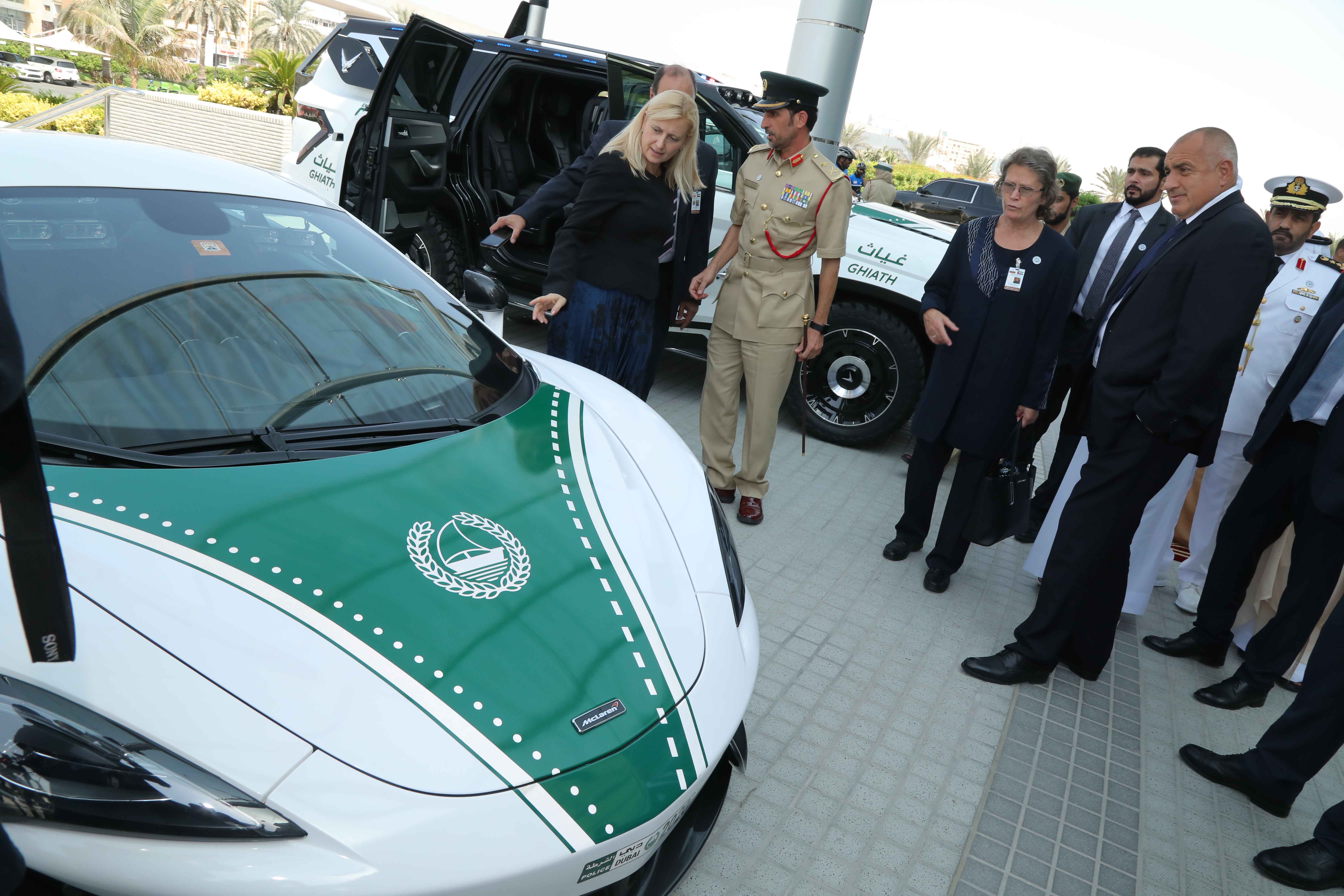 В Центърът по операциите на полицията премиерът Борисов се запозна с автомобилите, техниката и ресурсите, с които разполагат в Дубай. От там се координира дейността на 28 хиляди камери в целия град.