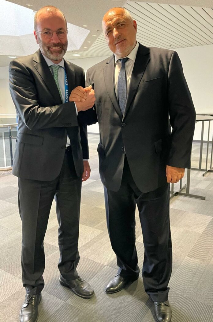 ГЕРБ – СДС продължават да полагат усилия за създаване на стабилно правителство, от което страната ни има нужда. Това заяви председателят на ГЕРБ Бойко Борисов по време на среща с Манфред Вебер, председател на най-голямата партия в ЕП – Европейската народна партия, която се проведе в рамките на конгреса на Християнсоциалния съюз (ХСС) в Аугсбург, Германия. Манфред Вебер и Бойко Борисов обсъдиха актуалната политическа обстановка в България. Борисов посочи, че ГЕРБ – СДС продължават да полагат усилия за създаване на стабилно правителство, от което страната ни има нужда. „България е изправена пред множество кризи и ние ще направим всичко по силите ни, за да я изведем от тях. Държавата ни фалира, заради управлението на „Продължаваме промяната“. Благодарение на тяхното правителство дефицитът ни достига 7%, а следващите няколко години ще бъдем принудени да теглим по 15 млрд. дълг“, посочи лидерът на ГЕРБ. Той сподели, че още в първите дни на Народното събрание ПГ на ГЕРБ -СДС е предложила мерки, насочени изцяло към хората и бизнеса, които биха ни извели от кризите.