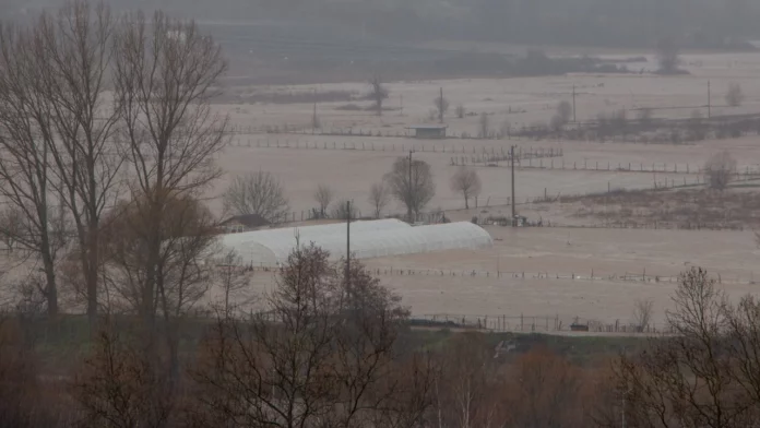 Силен дъжд наводни в Крумовград. Кадри на местната телевизия Krumovgrad TV показват наводнени ниви и дворове.