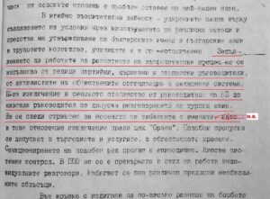 „Няма да повтарям. Съгласен съм с това да се даде незадоволителна оценка по възродителния процес на територията на селищната система. Да се работи със семействата поотделно, да се влезе по-близо до тях. Все още се шири говоренето на турски език и носенето на шалвари. Трябва да се проявява строг контрол“.