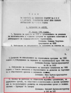 На 26 декември 1985 г. инструкторът (който скоро ще стане секретар) към Общинския комитет на БСП-Крушари Николай Мирчев пише „Преценка за хода на политическата учебна година в партията, комсомола и българските професионални съюзи“:
