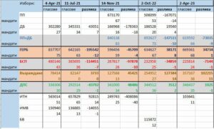 Анализът на последните пет избора в демократичния сектор показва, че имаше един пик на резултат при появата на ПП през ноември 2021, когато двете коалиции имаха заедно 83 мандата. Оттогава трендът е надолу. През октомври 2022 задно щяха да са първа сила със 73 мандата, макар да загубиха 10 мандата от първоначалния устрем. В неделя вече са втора сила с още 9 мандата надолу.
