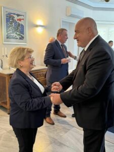 „Запознах посланиците с политическата ситуация в страната и всички усилия, които ГЕРБ положи, за да се случи ротацията на кабинета Денков – Габриел. Категорично заявих, че ГЕРБ няма връзка със служебното правителство и няма да носим отговорност за работата му. В същото време ще продължим да бъдем гарант за евроатлантическата ориентация на България“, написа във фейсбук бившият премиер.