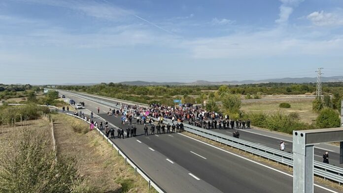 Около 200 души са на пътния възел на АМ „Тракия“, не пропускат автомобили, освен такива с бременни жени и с хора в критична ситуация.