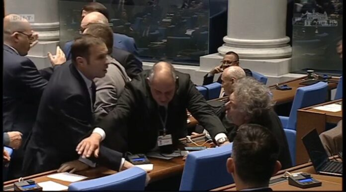 В този момент към Пейков заплашително се отправиха депутатите от „Възраждане“ Златан Златанов и Ивайло Чорбов, а колегата му Стою Стоев скочи да ги спре. Намеси се и квестор, който застана като преграда между Пейков и Чорбов. Около тях се скупчиха други депутати. Водещата заседанието Росица Кирова даде почивка, а разправията продължи още няколко минути. Накрая Ивайло Мирчев като охрана ескортира Манол Пейков от пленарната зала.