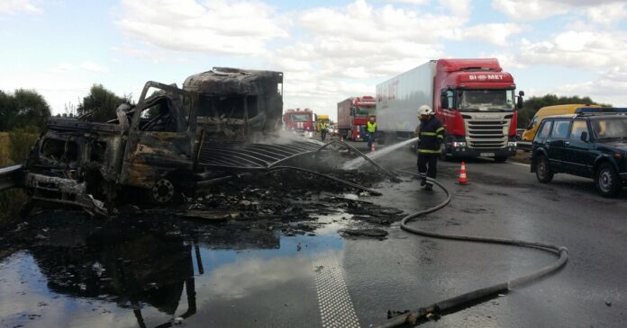 Два камиона се запалиха след катастрофа на 7-ия км на АМ „Тракия“ в платното в посока София, потвърдиха за NOVA от МВР.