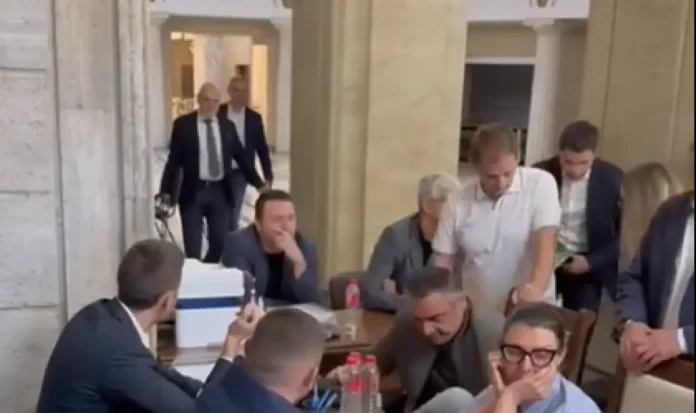 Ако едната група беше седнала по-рано, то другата не остана по-назад. Депутати и представители си донесоха столове и седнаха също край масата.
