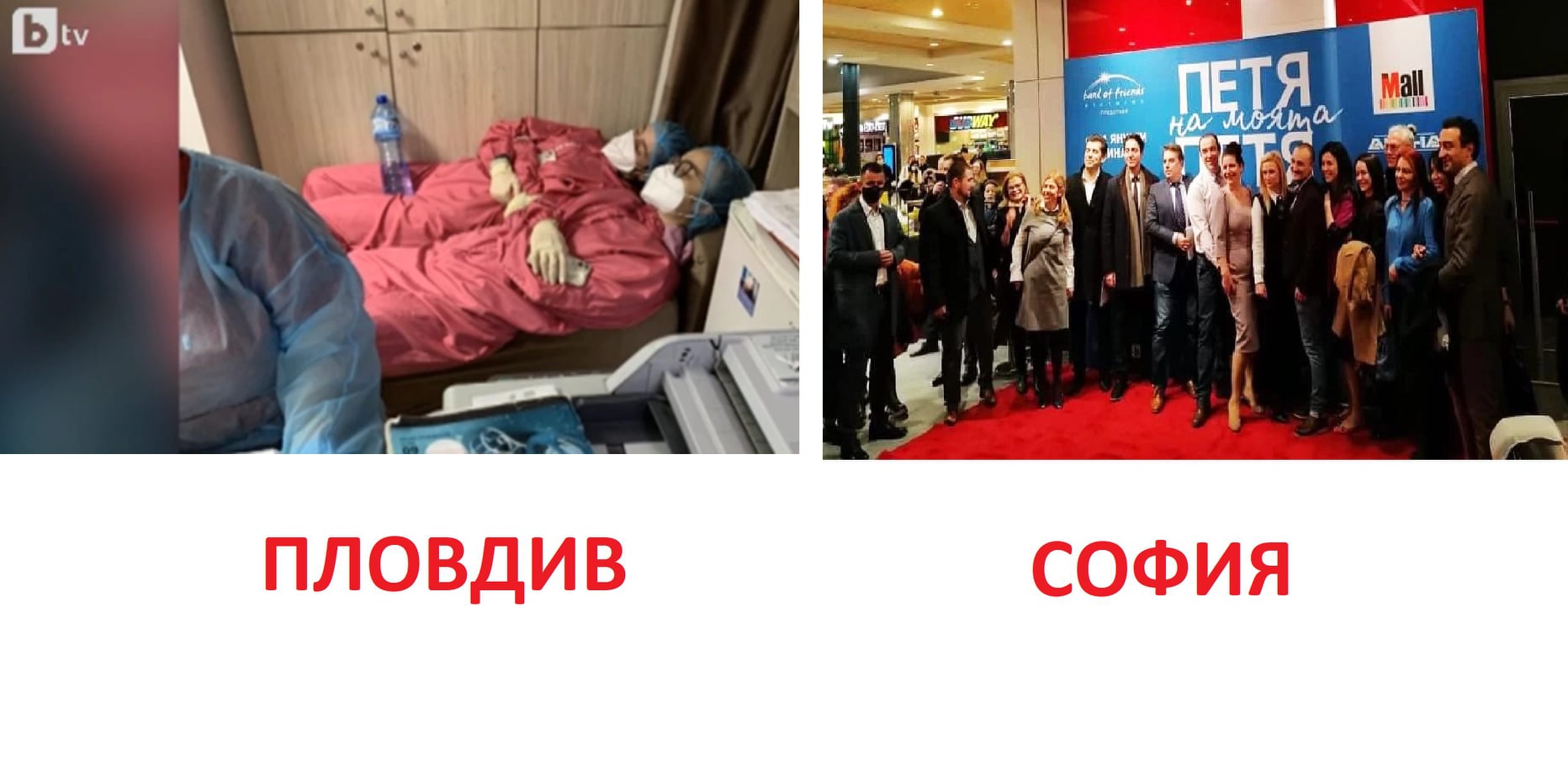 Докато лекарите в Пловдив отдъхват в минутите спокойствие с маски на лица, в София почтените спасители си правят оргии, като тази по време на популярна премиера на филм.