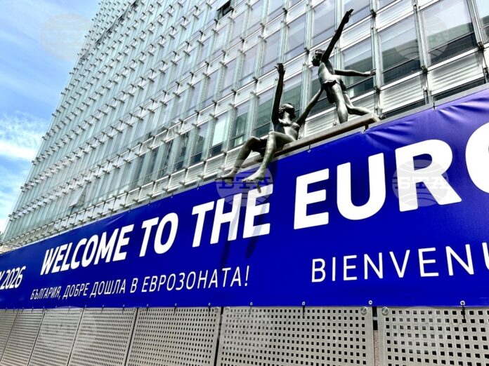 България, добре дошла в еврозоната!, гласи надписът на близо 30-метров транспарант, поставен на сградата „Шарльоман“ на Европейската комисия в Брюксел в навечерието на приемането на последните решения утре за присъединяването на нашата страна към общата европейска валута от 1 януари догодина.