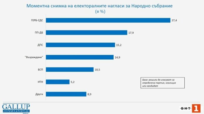Данните са от изследване на „Галъп интернешънъл болкан“ за Българската национална телевизия. Изследването обхваща 805 пълнолетни българи в представителна извадка и е проведено чрез интервю „лице в лице“ с таблети между 28 март и 5 април. То няма как да отрази последните развития и представлява моментна снимка към края на мандата на предходното правителство.