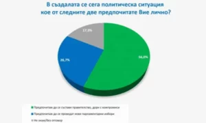 56% от запитаните избират опцията „Предпочитам да се състави правителство, дори с компромиси“, пред 26,7%, които избират „Предпочитам да се проведат нови парламентарни избори“. Останалите не могат да отговорят.