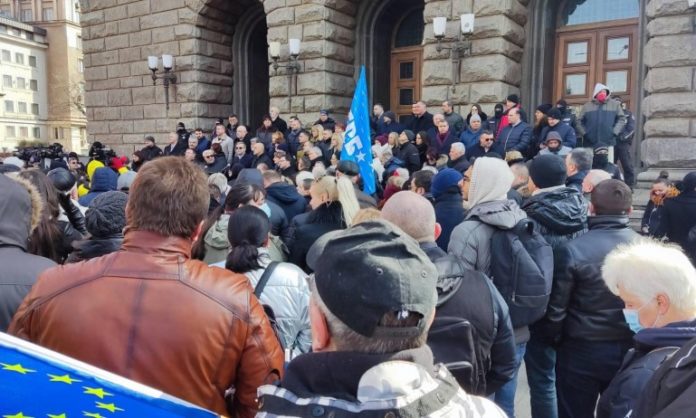 „В България вече има диктатура, а там е началникът на щаба на диктатора, който вкарва председателя на най-голямата опозиционна партия зад решетките“, заяви проф. Ангелов сочейки първо Министерския съвет, където е Кирил Петков, а след това президентството.