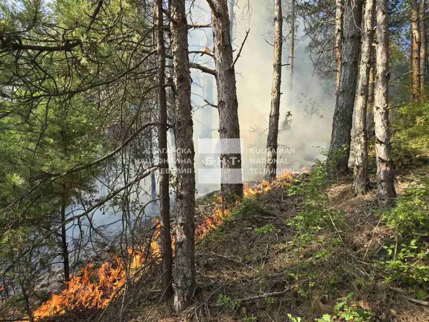 Огънят засега е низов и обхваща около 100 дка иглолистна гора