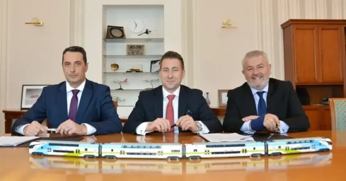 Договор за доставка на седем двуетажни влака, които ще бъдат закупени със средства по Националния план за възстановяване и устойчивост, подписаха служебният министър на транспорта и съобщенията Георги Гвоздейков и ръководството на полската компания.