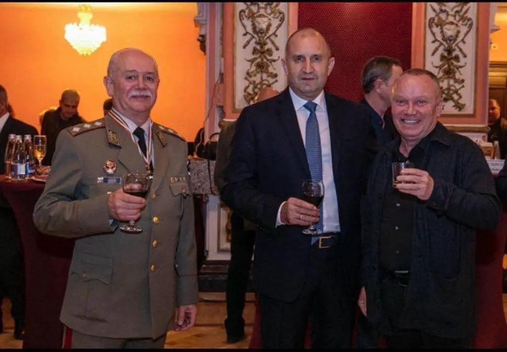 Появиха се снимки от коктейл, на който Румен Радев пие вино със задържания за контрабанда Марин Димитров. Снимките са от парти във Военния клуб, пише bnews.bg.