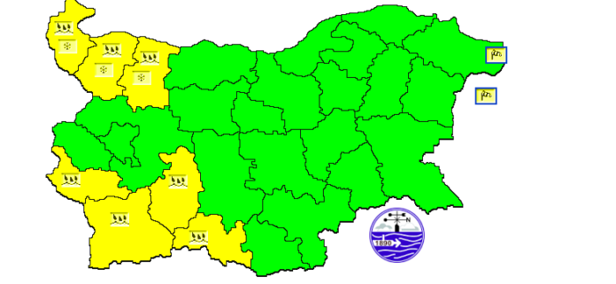 На Бъдни вечер от югозапад на изток ще започне да вали дъжд, който до вечерта ще обхване почти цялата страна. Обявен е жълт код за значителни валежи и силен вятър в 7 области.
