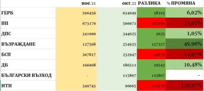 „Промяната“ се сви с 33%, БСП – с почти 15%, а ИНТ се стопиха