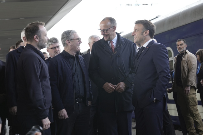 „Макрон, Стармър и Мерц, заснети на видео при завръщането си от Киев. Вижда се пликче с бял прах на масата. Макрон бързо го прибира в джоба си, Мерц скрива лъжичката. Не е дадено обяснение“, публикува един от потребителите в X, които стоят зад конспиративната теория.