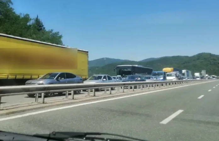 В района се е образувало огромно задръстване. Тунелът е затворен, тъй като движението е само в едната тръба поради ремонт.