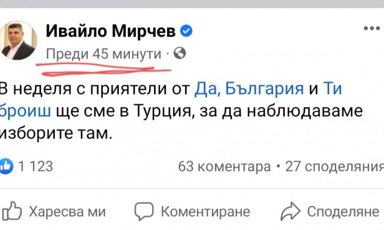 Преди минути Ивайло Мирчев обяви, че заминава за Турция, където ще се зареди да наблюдава как българските граждани ще упражнят правото си на вот по повод президентския балотаж. Същият Мирчев обаче явно забравя, че следите в интернет на написаното от него не могат да бъдат изтрити. Нито пък думите, изречени от тях от парламентарната трибуна, когато те внесоха изменение в Изборния кодекс да отпаднат ограниченията за изборните секции в чужбина.