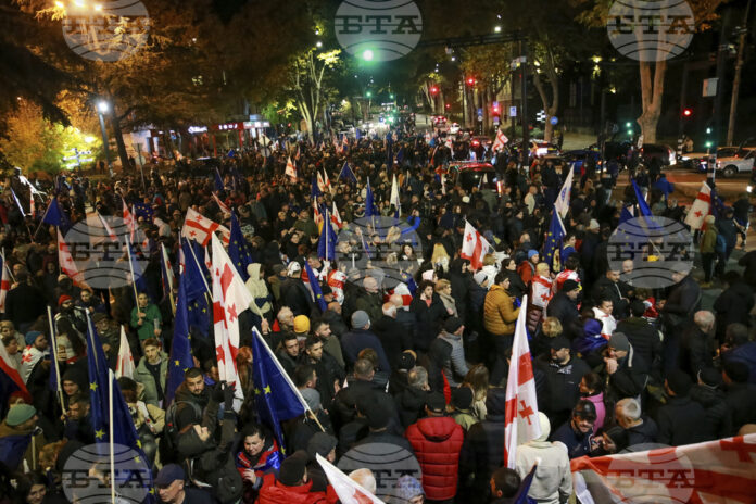 Демонстрациите бяха предизвикани от решението на управляващите да замразят за 4 години преговорите за присъединяване на Грузия към Европейския съюз, съобщава Нова тв. В Тбилиси протестиращите хвърляха фойерверки по полицията, която отговори със залпове от водни оръдия.