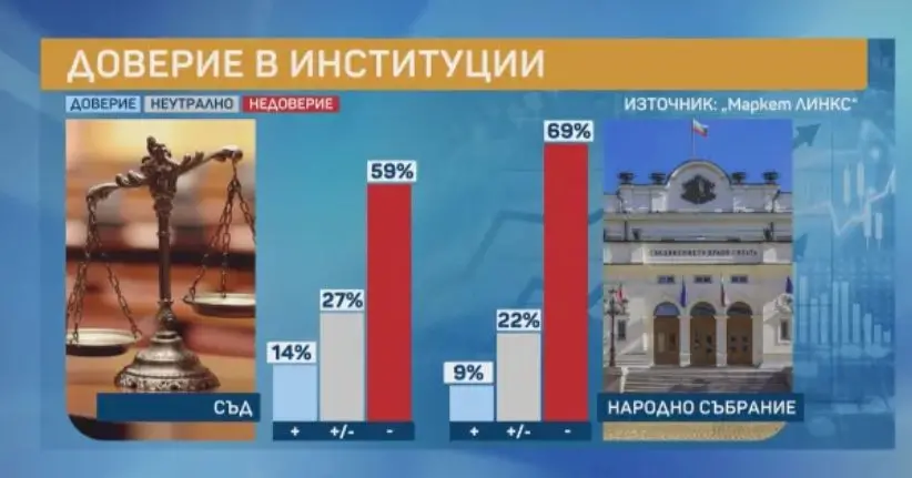 Исторически спад се наблюдава в доверието към прокуратурата, като съдът също страда от общото недоверие и липса на усещане за справедливост. Народното събрание също стартира с ниски нива на доверие, заяви Добромир Живков.